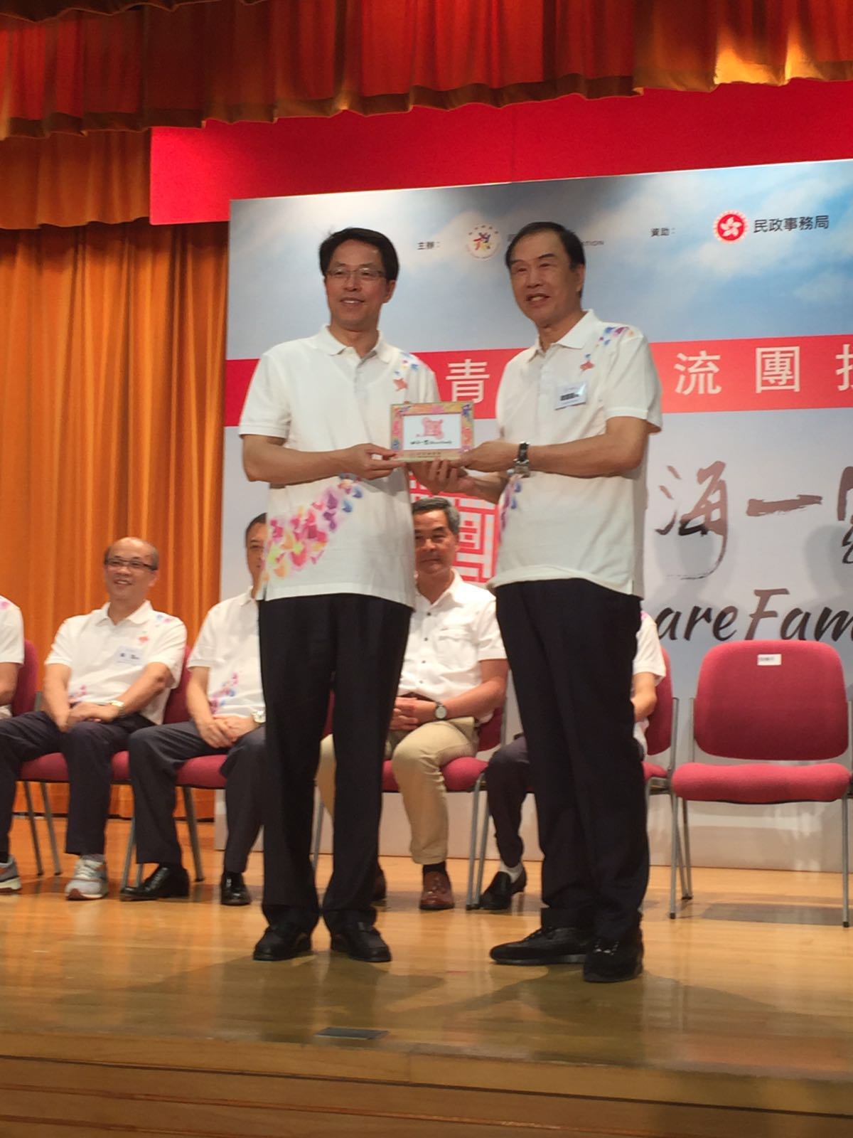为庆祝香港回归祖国20周年,及贯彻「四海一家」的精神,2016年6月25日新家园协会于将军澳香岛中学礼堂举行第二届「四海一家. 香港青年交流团」授旗礼,行政长官梁振英、中联办主任张晓明等香港政商界要员出席了活动。